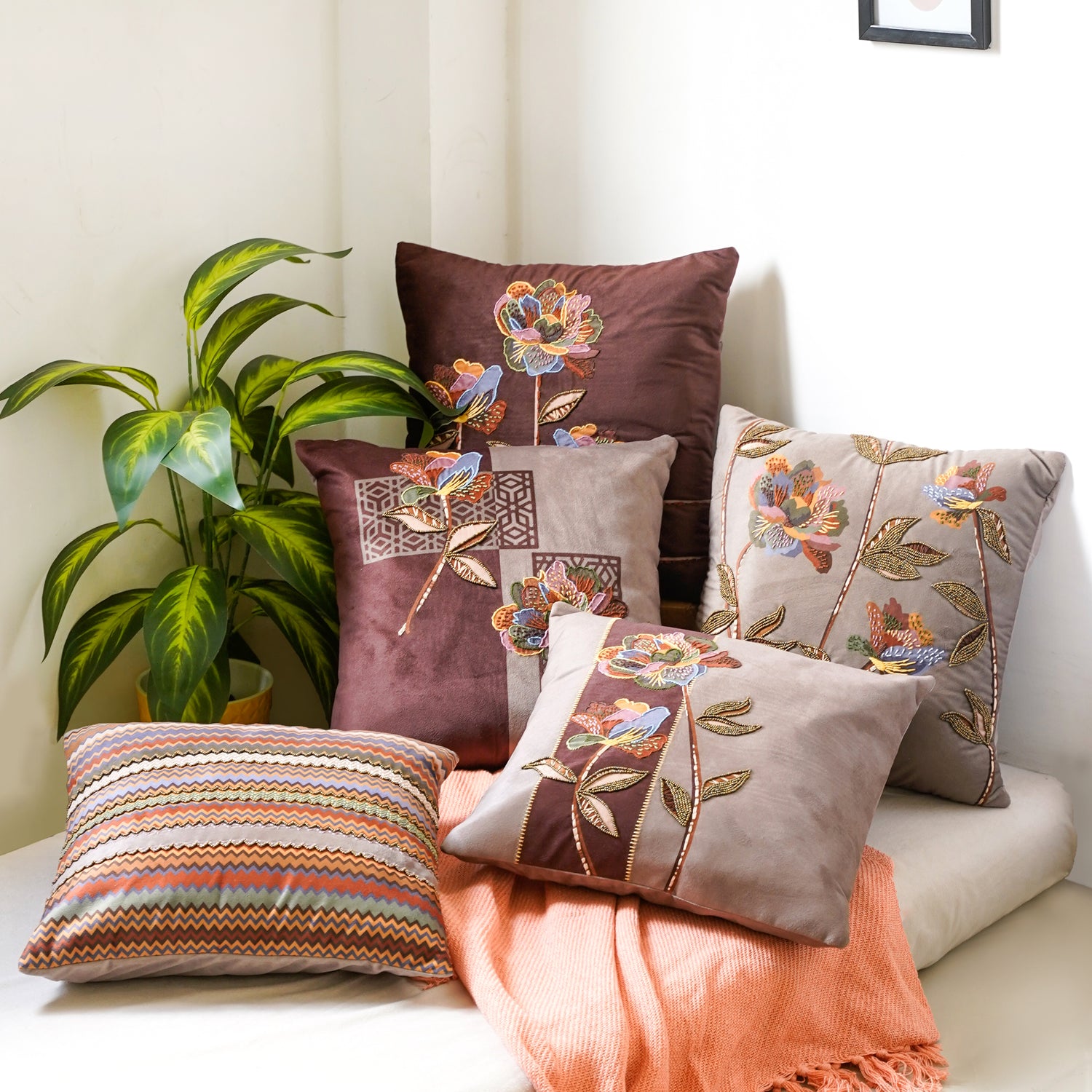 "Infinite Petals" Amidst the muted tones of beige and brown, vibrant roses...