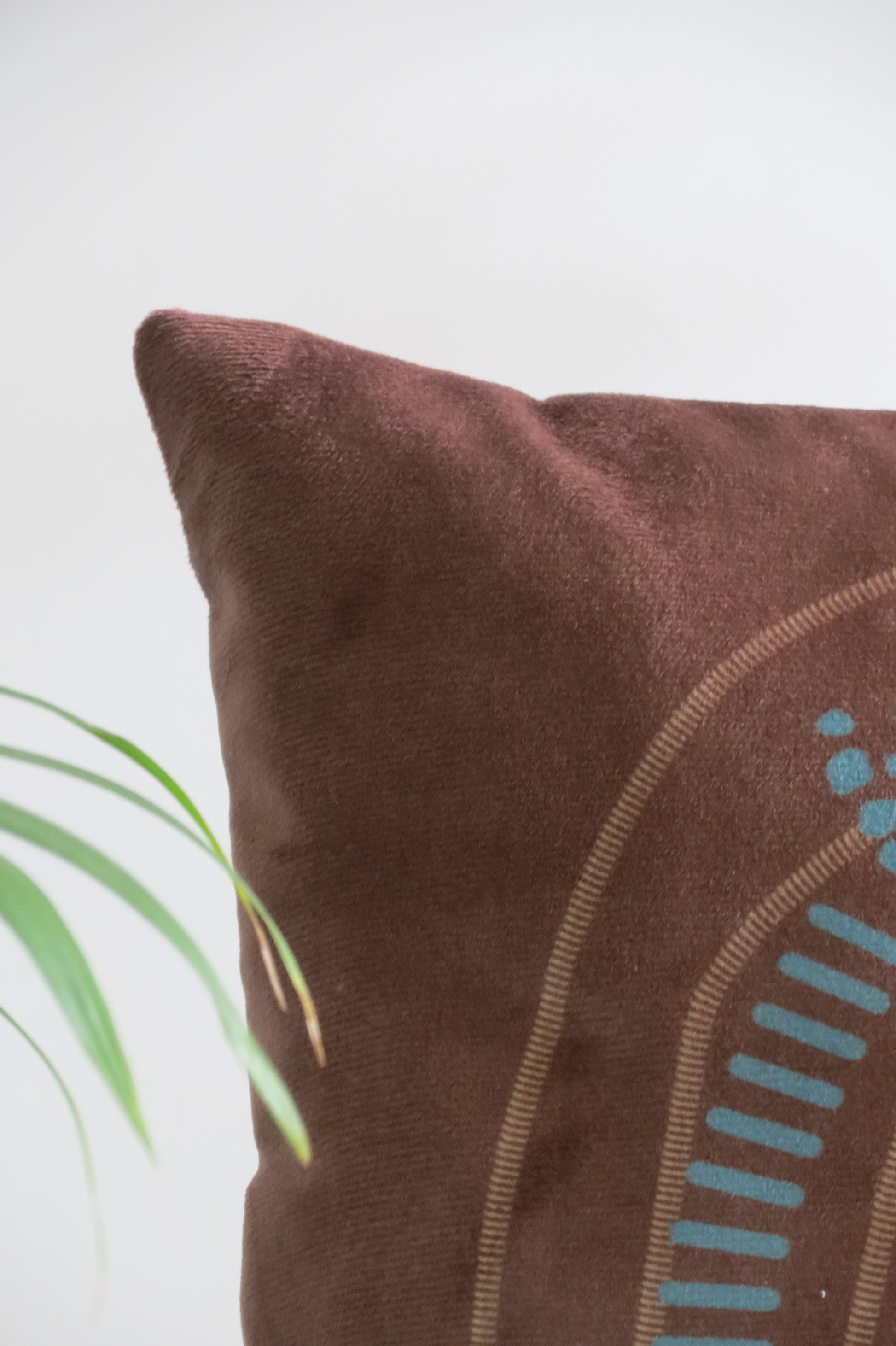 Embark on a journey through 'Nature’s Canvas' with our enchanting cushion covers. Imagine a serene landscape, where the earthy hues of Dark Brown mingle with the calming Blues of the sky. Delicate dots dance across the fabric, while mysterious shapes add intrigue. Above, flower pots bloom with tiny plants, bringing nature's beauty into your home.