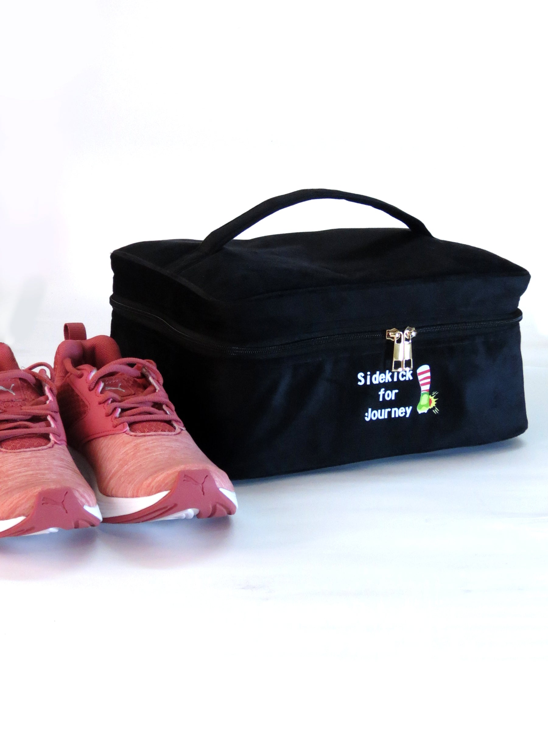 This Mid July Black Currant set of 4 travel pouches are designed to neatly organise everything from your makeup, medicines, toiletries, shoes, hair straighteners, hair dryers, to socks and lingerie in your luggage. It's lightweight, flexible and versatile. Get the peace of mind with organized travelling or keeping everything organized even at home, in the most stylish way. It is made using vegan velvet fabric, to add the touch of luxury and elegance.