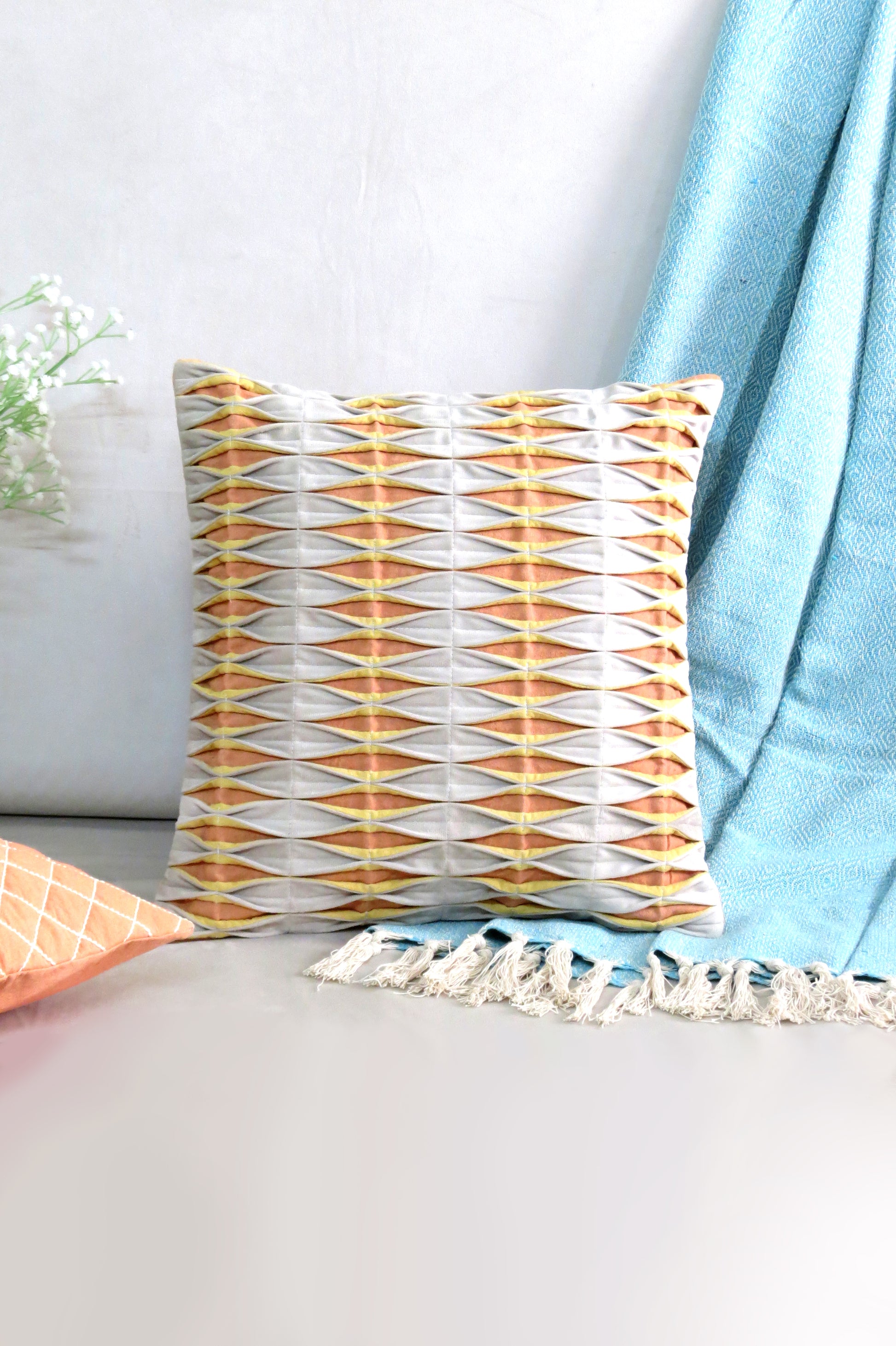 Discover our 'Soft Sculptures' cushion cover, crafted with exquisite fabric manipulation techniques. This luxury cushion, sized perfectly at 16 x 16 inches, features elegant folds and twists in Off-White fabric. Ideal for your couch, chair, or bed, this cushion cover combines velvet and cotton for a sophisticated touch. Elevate your home décor with our rectangle cushion, perfect for your home. Purchase your favorite cushion cover online today to add a touch of elegance.