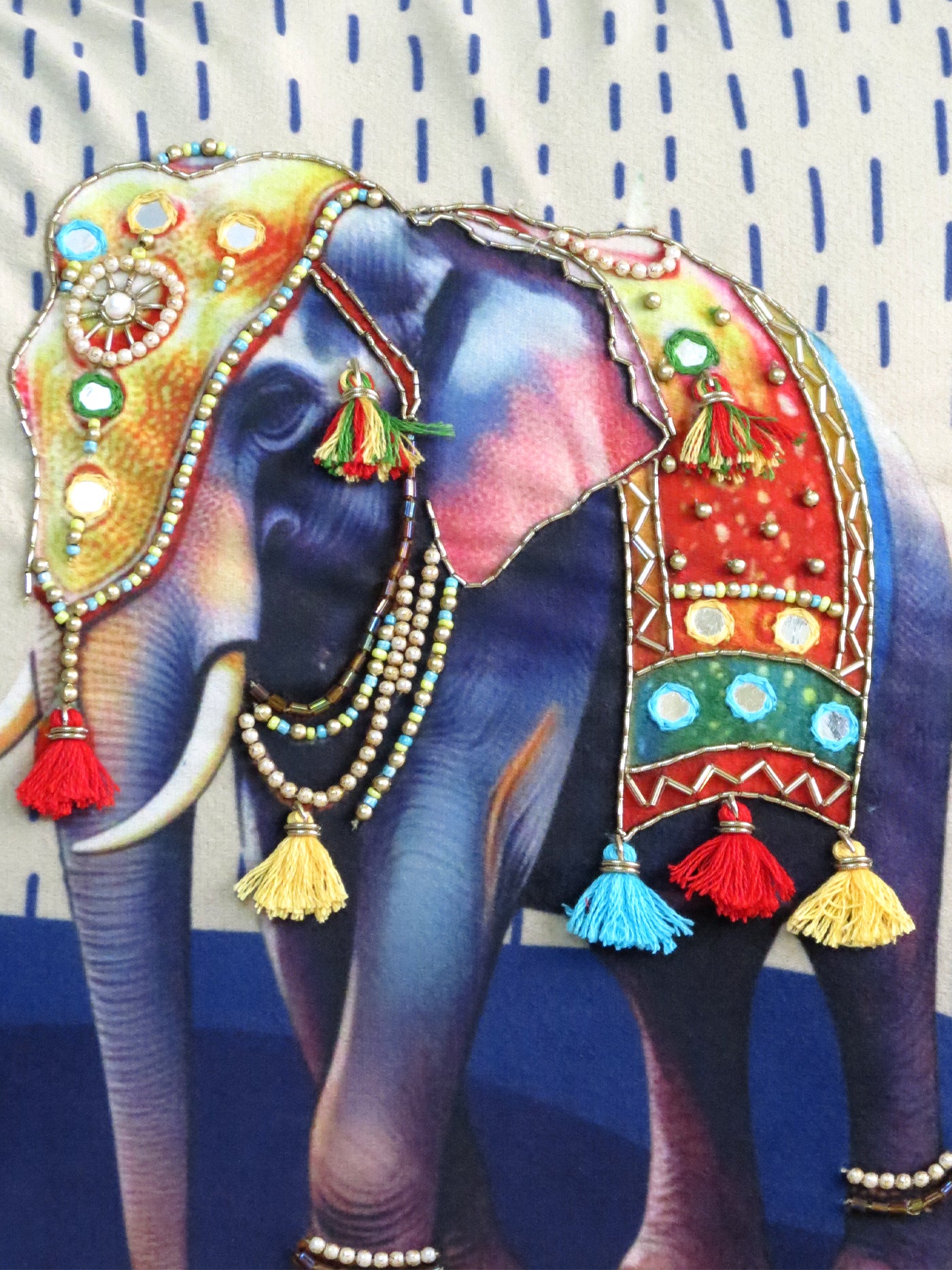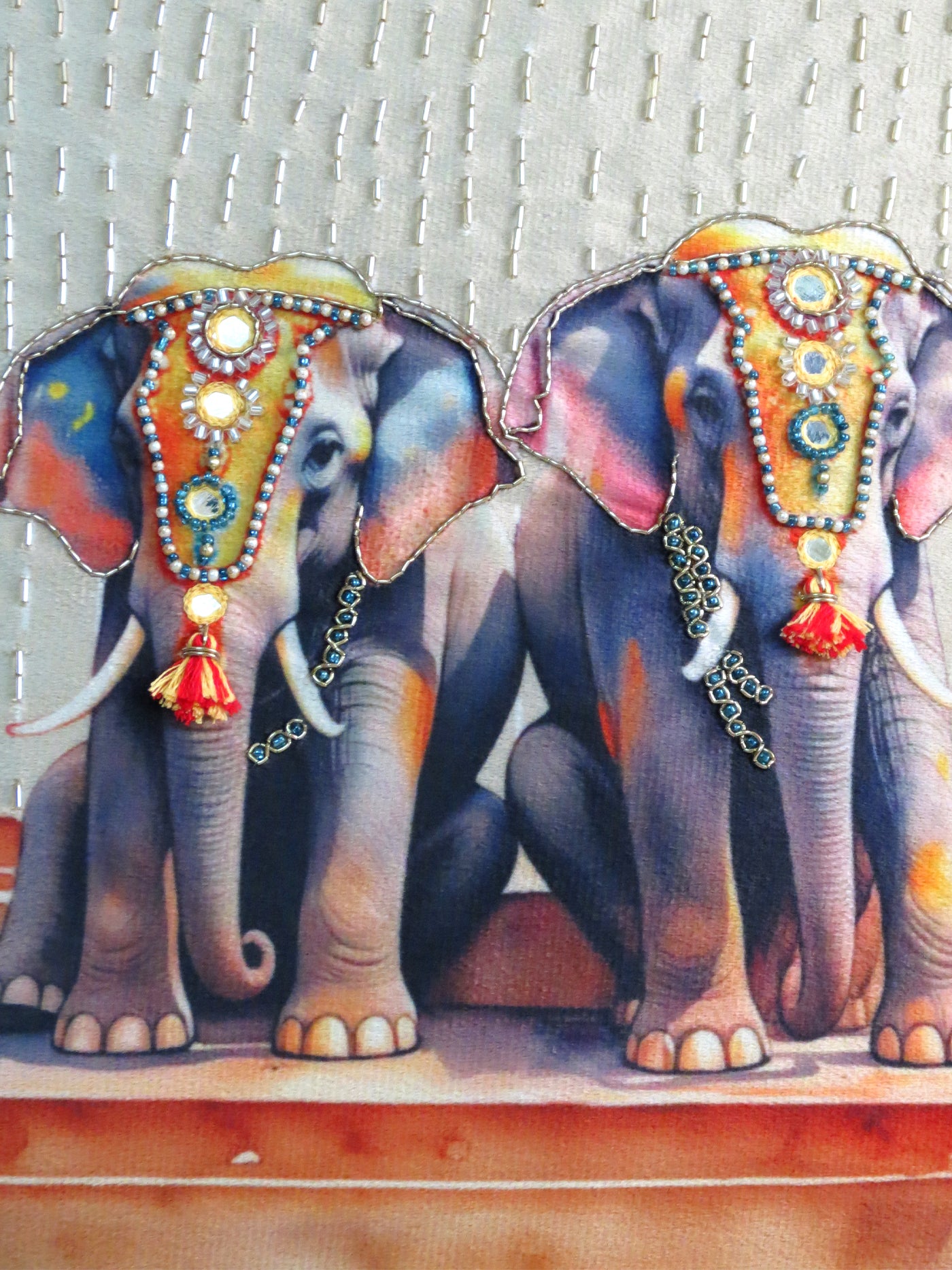 Drawing inspiration from India's majestic Elephant Festival, where elephants are adorned with vibrant fabrics and jewelry, our 'Gaja Utsav' cushion cover collection brings the grandeur of this celebration into your home. With intricately designed elephants in bright colors, hand embroidery, and zardozi technique, each cushion showcases the rich cultural heritage of India.