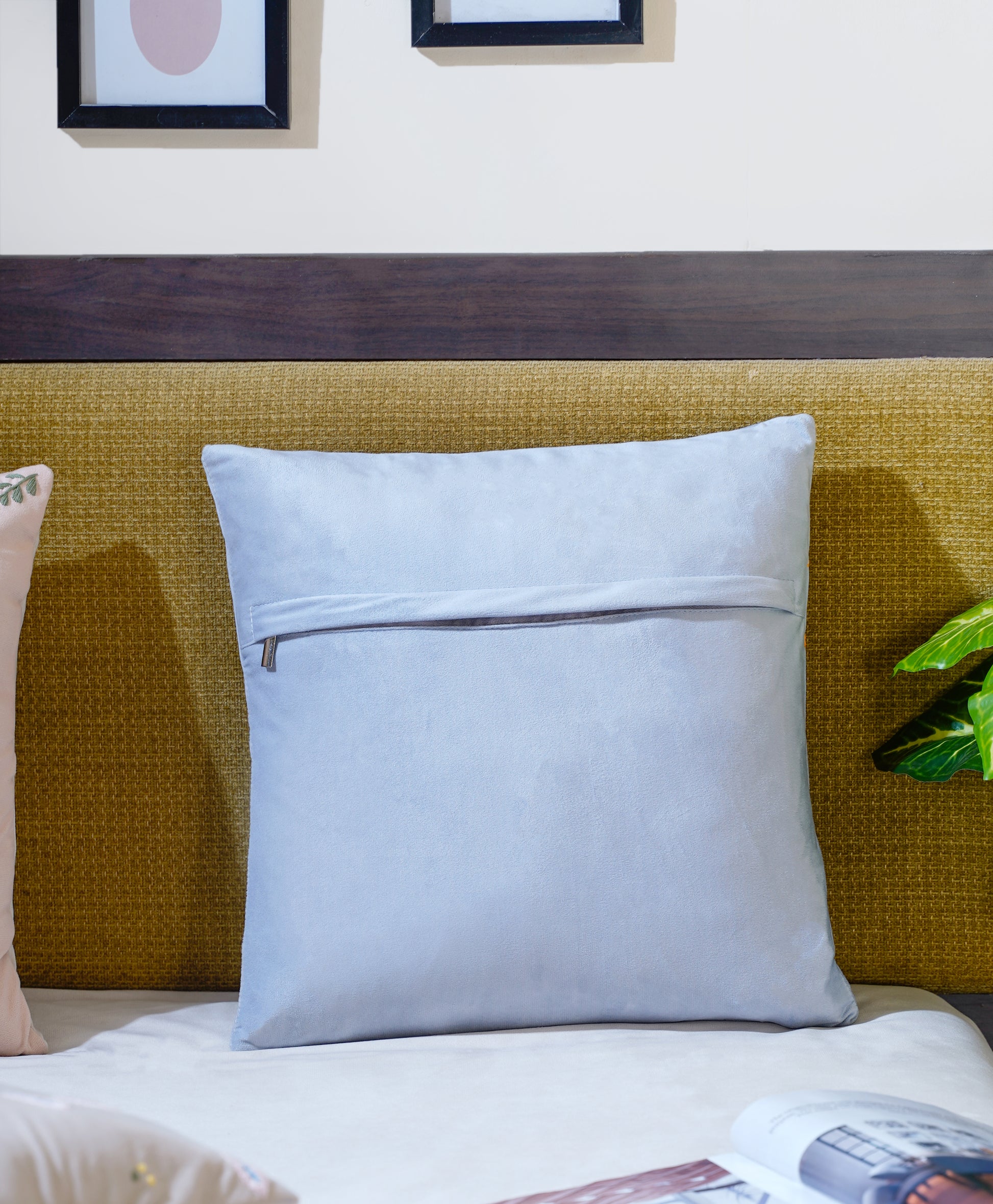 The cozy cushion cover in a soothing shade of blue is inspired from the minimal and contemporary art. The abstract design will uplift the space of a modern house. From bedroom to living space, the cushion can be placed in any setting.