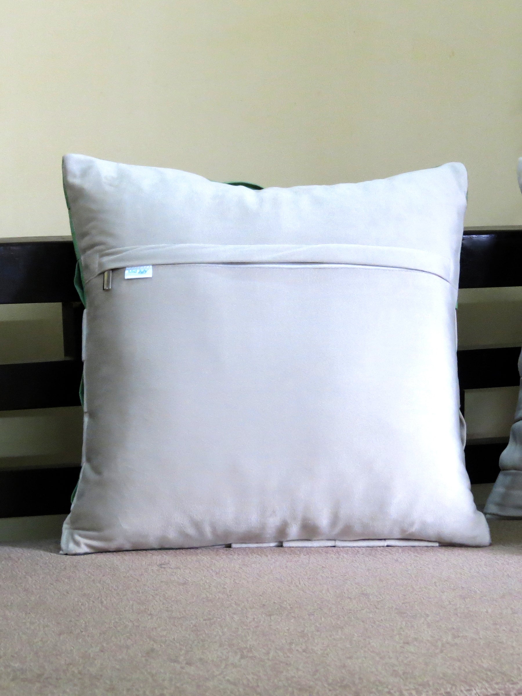 Enhance your home decor with the "Touch of Elegance" cushion cover. This luxurious cushion cover combines Off-White Velvet with a hint of Sea Green Cotton, creating a beautiful pattern inspired by intricate fabric weaves. Ideal for your couch, chair, or bed, this cushion cover adds a modern blend of elegance and style to your decor. Purchase this elegant pillow cover online and embrace the sophistication it brings to your space.