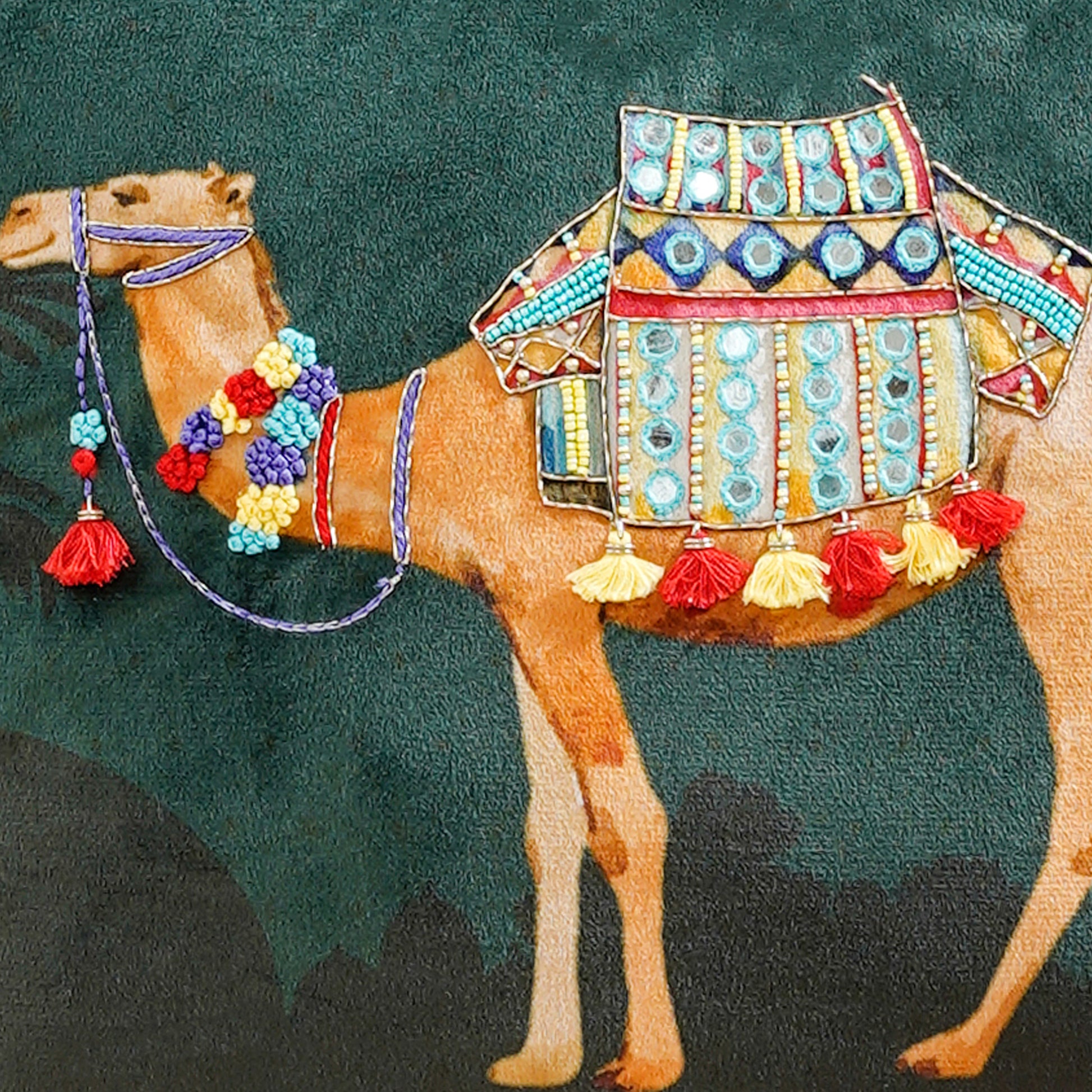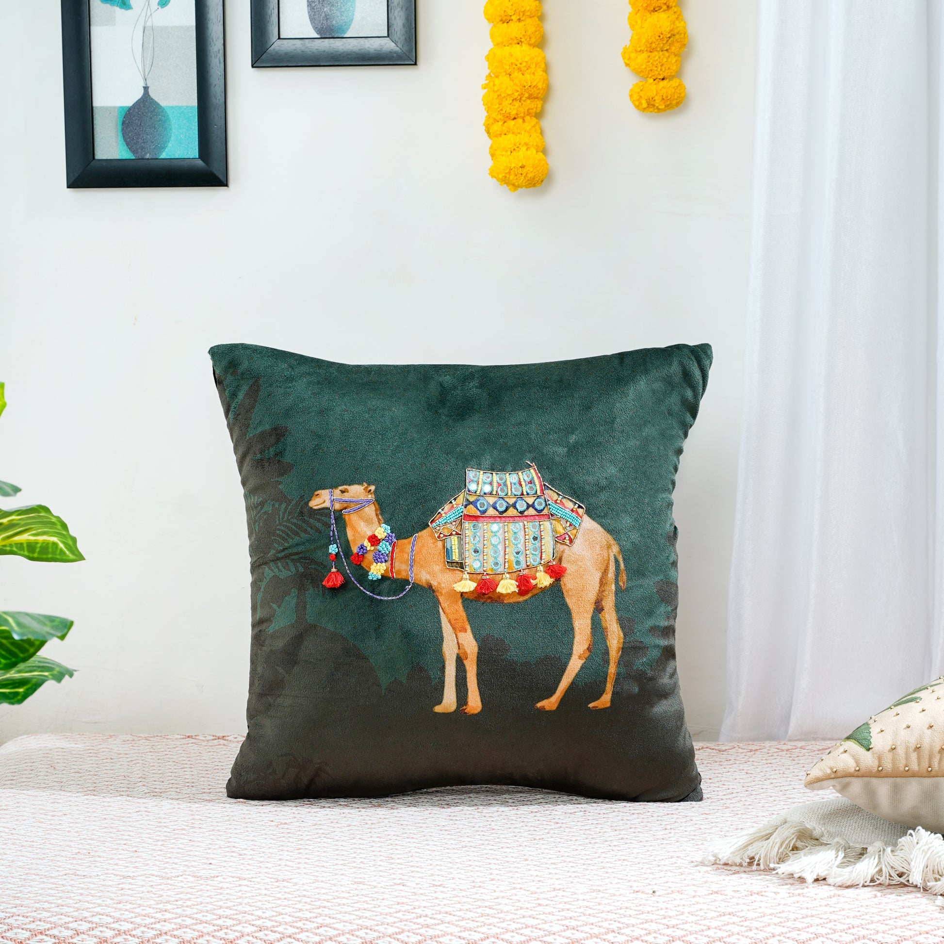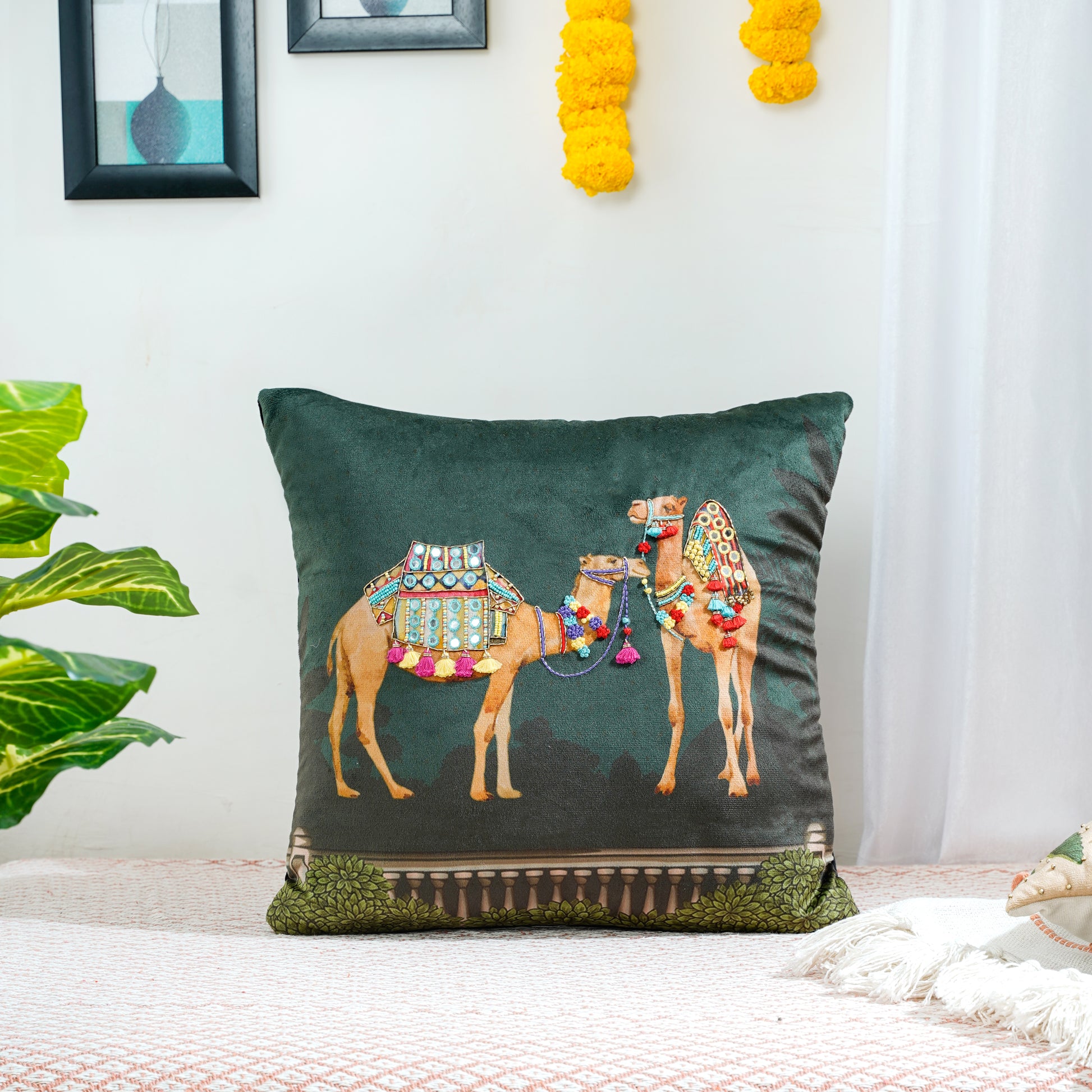 Experience 'Royal Opulence' with cushion covers inspired by Rajasthan's Pushkar Mela, celebrating vibrant colors and intricate patterns. Transform your home into an oasis of elegance, paying homage to the region's artistic spirit and cultural heritage.
