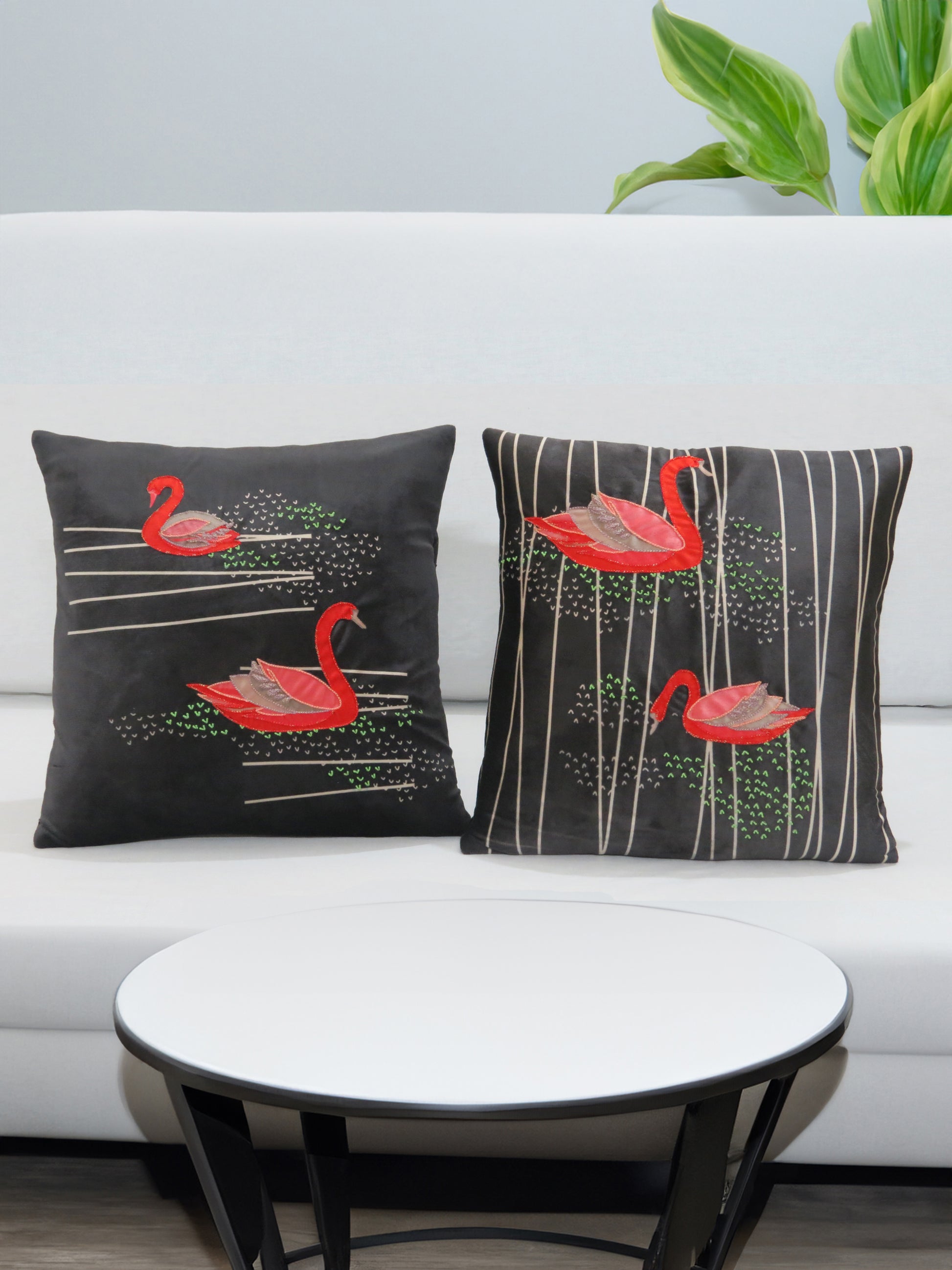 Swan Serenade Black Velvet Cushion Cover 16x16 Inch Set of 2