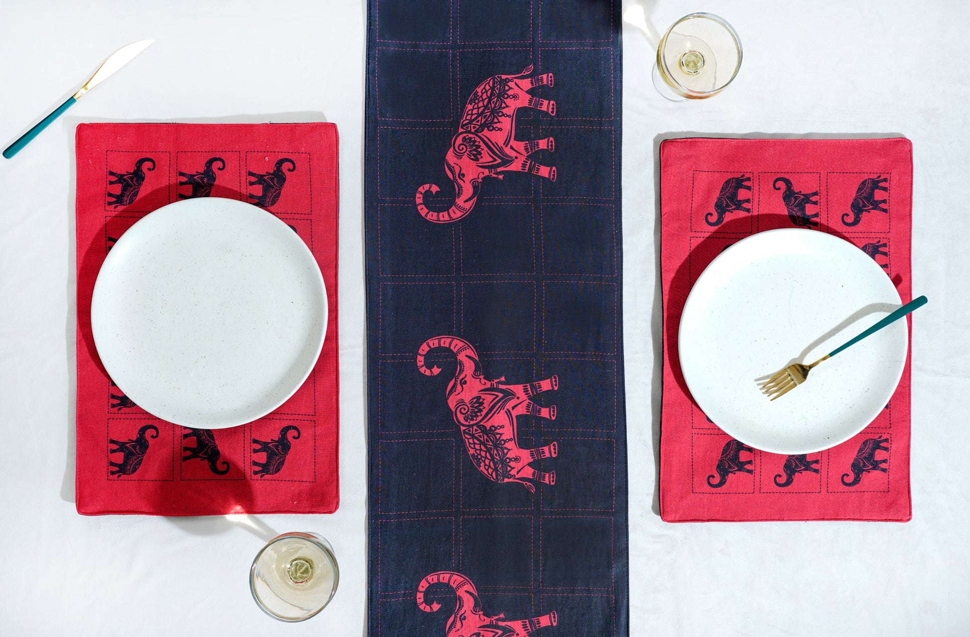 Table Runner, crafted from sustainable 100% cotton fabric. Embrace India's rich heritage with four distinct designs, adding elegance and sustainability to your dining space. Explore today for timeless style and eco-conscious living.