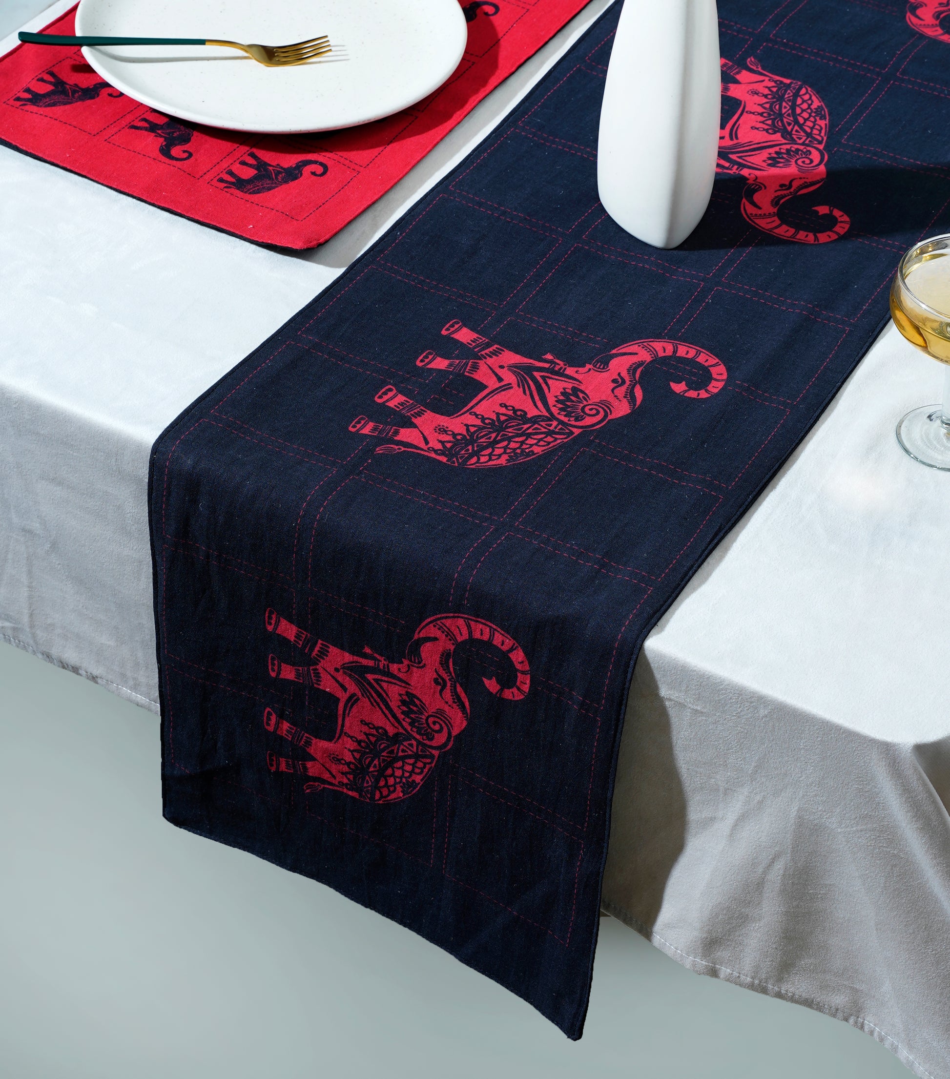 The Majestic Elephant black cotton Table runner 12x48 Inch