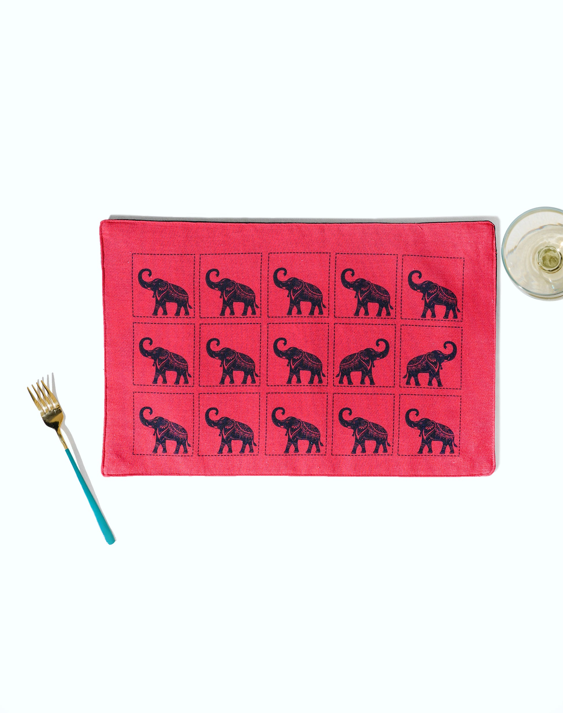 The Majestic Elephant cotton Table Mat 12x18 Inch Set of 2