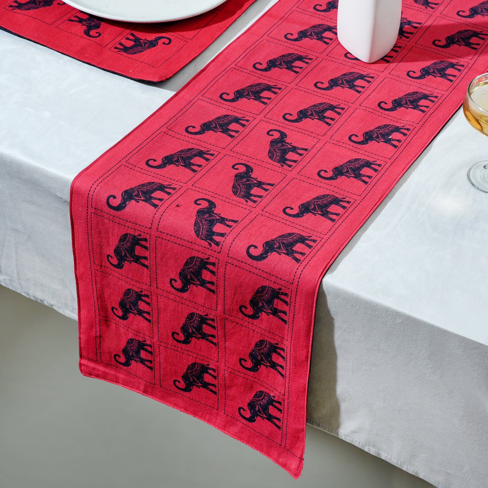 Table Runner, crafted from sustainable 100% cotton fabric. Embrace India's rich heritage with four distinct designs, adding elegance and sustainability to your dining space. Explore today for timeless style and eco-conscious living.